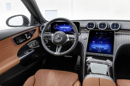L'intérieur de la dernière Mercedes-Benz Classe C Break All-Terrain offre un espace sophistiqué et polyvalent, combinant des éléments de luxe avec une fonctionnalité adaptée à l'aventure. Les matériaux haut de gamme et les finitions soignées créent une atmosphère raffinée, tandis que les détails métalliques subtils ajoutent une touche moderne. Les sièges confortables sont conçus pour une variété d'environnements, offrant un soutien optimal pendant les trajets en ville comme lors des escapades tout-terrain. Les technologies avancées, telles que les écrans tactiles intuitifs et les fonctionnalités de connectivité, sont intégrées de manière élégante dans le tableau de bord, offrant une expérience de conduite moderne et pratique. Avec un espace généreux pour les passagers et les bagages, l'intérieur de la Classe C Break All-Terrain est conçu pour allier confort, luxe et adaptabilité, quels que soient vos projets de voyage.