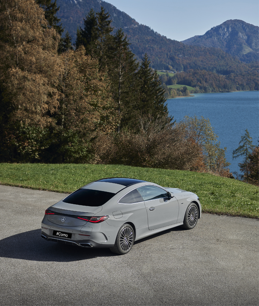 Arrêtez-vous un instant et admirez la dernière Mercedes-Benz CLE une esthétique avant-gardiste, captivant les regards par son design extérieur à la fois puissant et élégant. Dès le premier regard, le design avant futuriste attire l'attention avec son équilibre parfait entre une présence imposante et une élégance classique. Le "nez de requin" incliné vers l'avant, accompagné de la calandre profonde arborant le motif étoilé Mercedes-Benz chromé tridimensionnel, crée une allure distinctive.